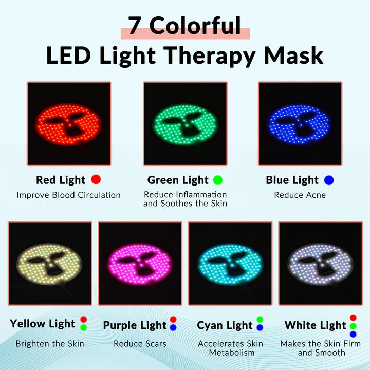 • 360 LEDs & 7 Colors Targeted Therapy: This LED face mask utilizes 360 high-quality LEDs to deliver 7 specific wavelengths (Red, Blue, Green, Yellow, Purple, Cyan, White). Red light promotes collagen production, Blue light helps control acne, Green light soothes skin sensitivities. Each wavelength works on different skin layers to improve multiple concerns.